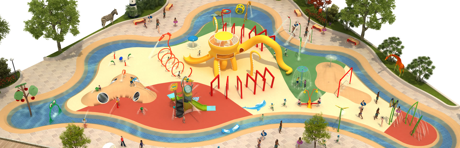 卡通系列戲水設備是水上樂園中以各種卡通形象為設計靈感的玩水設施,旨在通過模擬卡通人物或動物的形態,為游客提供獨特且富有童趣的娛樂體驗。卡通系列戲水設備以其獨特的設計和豐富的功能為水上樂園增添了無限魅力。這些設備不僅提供了清涼的夏日體驗還融入了科普教育和親子互動的元素讓游客在享受樂趣的同時也能增長知識、增進感情。